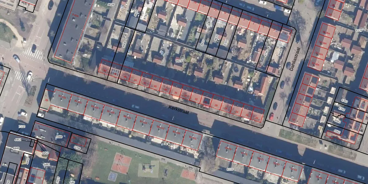 Het perceel waarop Kerkstraat 34 staat heeft een oppervlakte van 3813 m². Dit is een zeer groot perceel. De perceeloppervlakte wordt geregistreerd door het Kadaster. Gedetailleerde informatie over de maten van dit perceel kunt u vinden in het rapport Kadastrale kaart met maatvoering van Kerkstraat 34.