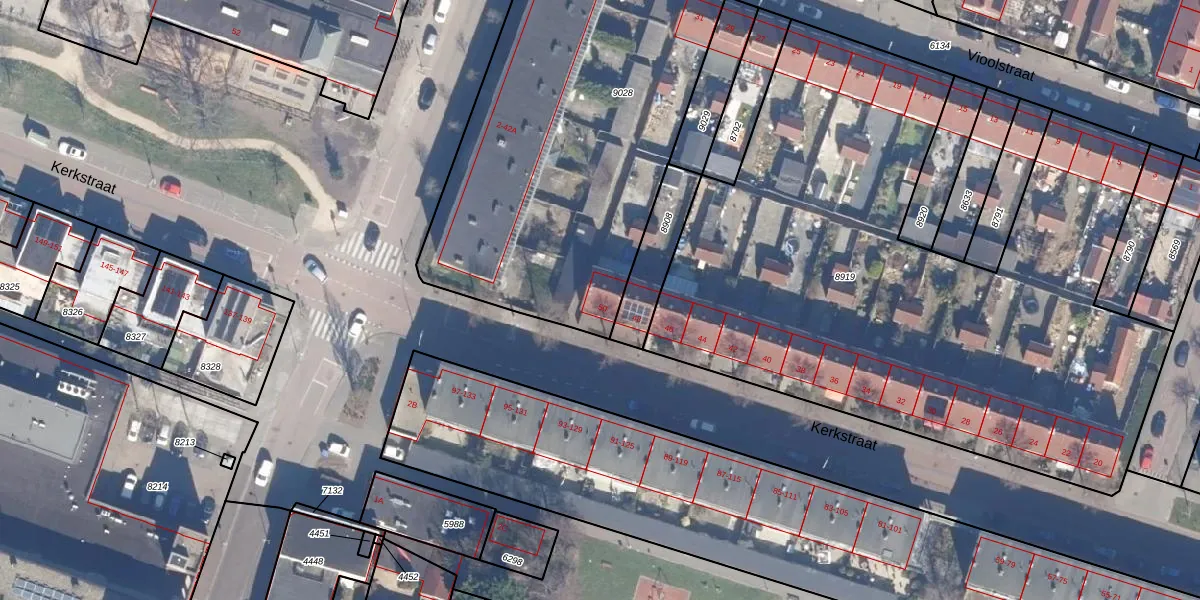 Het perceel waarop Kerkstraat 50 staat heeft een oppervlakte van 2060 m². Dit is een zeer groot perceel. De perceeloppervlakte wordt geregistreerd door het Kadaster. Gedetailleerde informatie over de maten van dit perceel kunt u vinden in het rapport Kadastrale kaart met maatvoering van Kerkstraat 50.