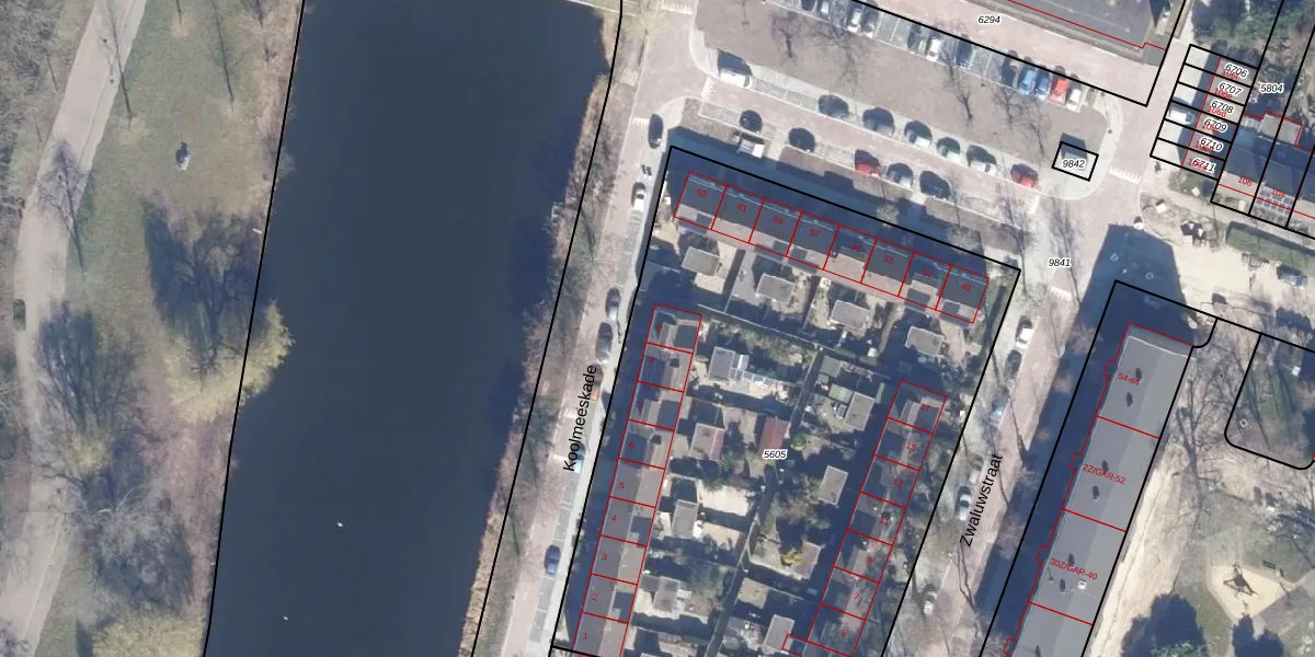 Koolmeeskade 9 is gelegen op kadastraal perceel WMV00A5605. Deze kadastrale aanduiding is uniek en wordt gebruikt door het Kadaster om eigendomsrechten en andere zakelijke rechten vast te leggen. Het perceel maakt onderdeel uit van de kadastrale gemeente Wormerveer.