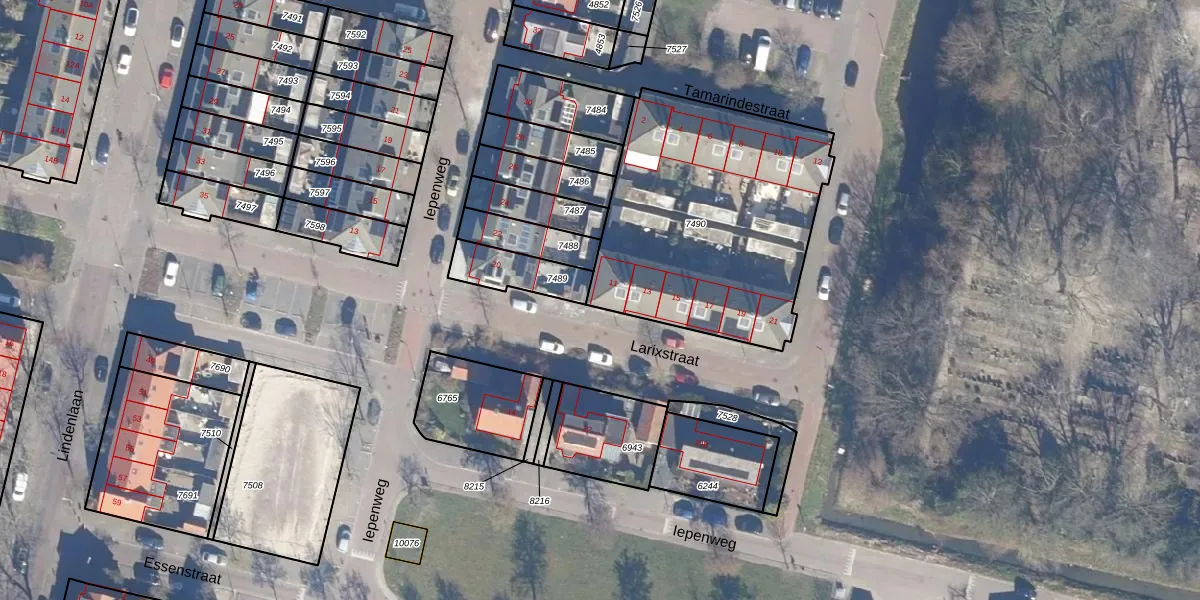 Het perceel waarop Larixstraat 11 staat heeft een oppervlakte van 1266 m². Dit is een zeer groot perceel. De perceeloppervlakte wordt geregistreerd door het Kadaster. Gedetailleerde informatie over de maten van dit perceel kunt u vinden in het rapport Kadastrale kaart met maatvoering van Larixstraat 11.