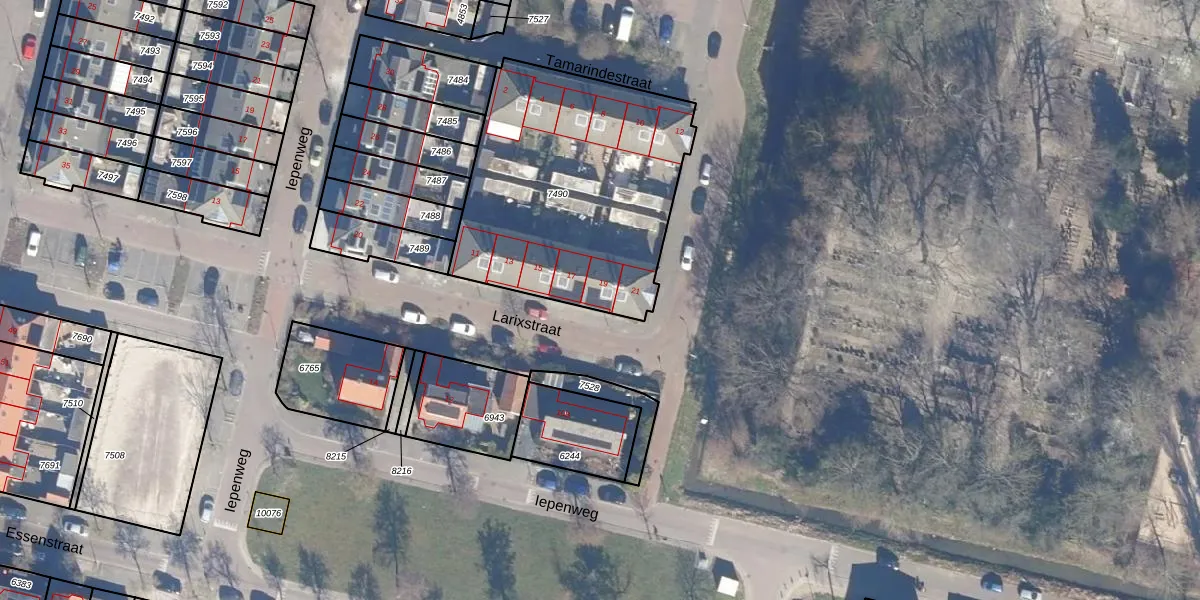 Het perceel waarop Larixstraat 19 staat heeft een oppervlakte van 1266 m². Dit is een zeer groot perceel. De perceeloppervlakte wordt geregistreerd door het Kadaster. Gedetailleerde informatie over de maten van dit perceel kunt u vinden in het rapport Kadastrale kaart met maatvoering van Larixstraat 19.