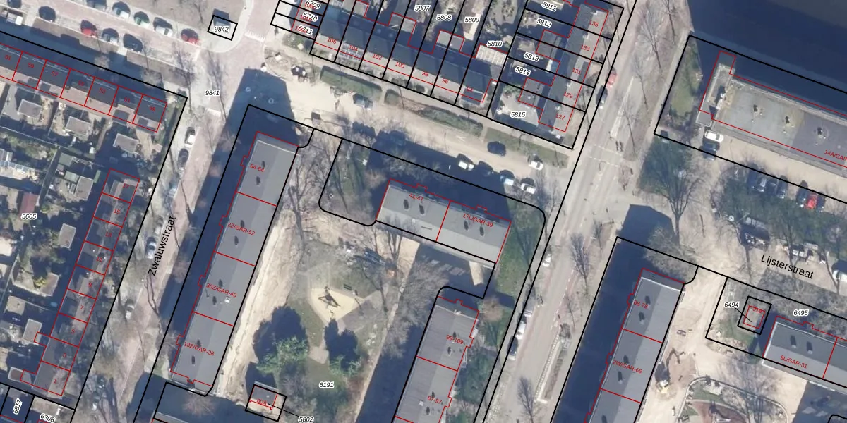 Het perceel waarop Lijsterstraat 41 staat heeft een oppervlakte van 2135 m². Dit is een zeer groot perceel. De perceeloppervlakte wordt geregistreerd door het Kadaster. Gedetailleerde informatie over de maten van dit perceel kunt u vinden in het rapport Kadastrale kaart met maatvoering van Lijsterstraat 41.