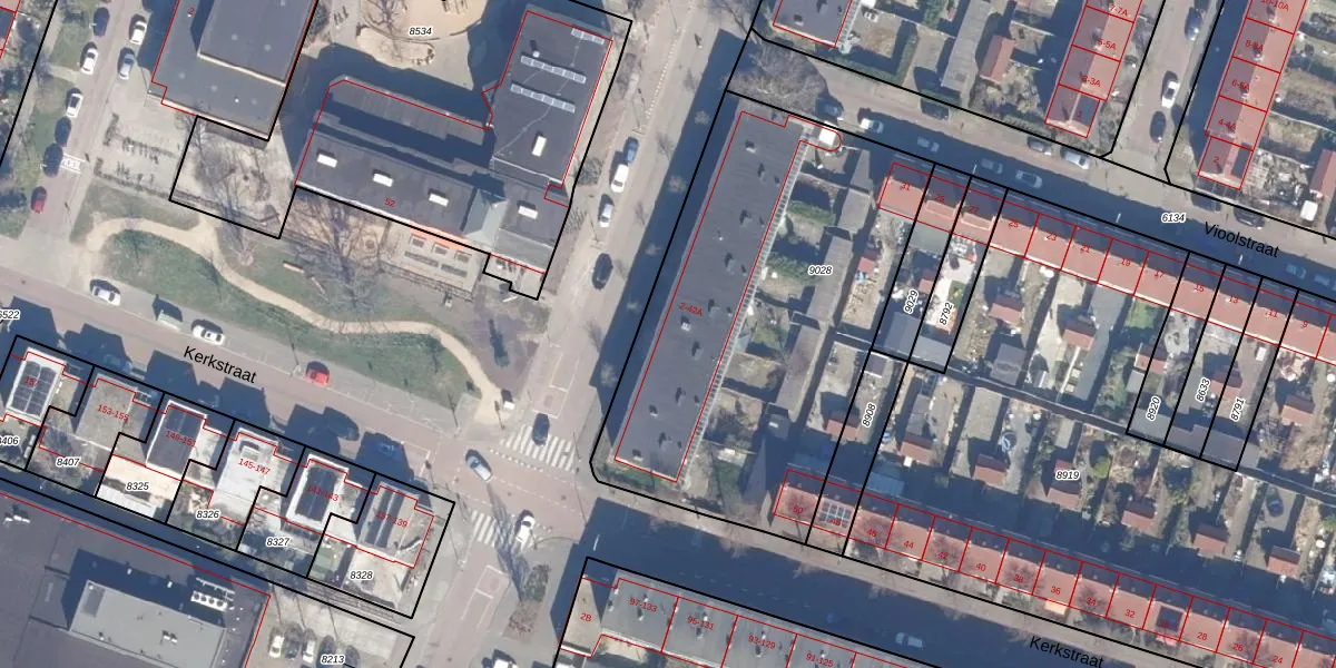 Het adres ligt op het perceel WMV00-A-9028, dat zich in de kadastrale gemeente Wormerveer bevindt. De oppervlakte van het perceel is 2060 m². Dat is groter dan gemiddeld in Wormerveer, waar de gemiddelde perceeloppervlakte op 1222,73 m² ligt. De grootste perceeloppervlakte in de kadastrale gemeente is 26,0 ha. De kleinste oppervlakte bedraagt 0 m². Er zijn 26 adressen aanwezig op het perceel. De huidige grenzen van het perceel zijn digitaal in de Basisregistratie Kadaster (BRK) geregistreerd op 26-06-2015.