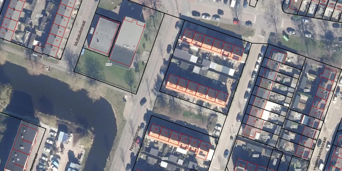 Noorderstraat 102 is gelegen op kadastraal perceel WMV00A5906. Deze kadastrale aanduiding is uniek en wordt gebruikt door het Kadaster om eigendomsrechten en andere zakelijke rechten vast te leggen. Het perceel maakt onderdeel uit van de kadastrale gemeente Wormerveer.