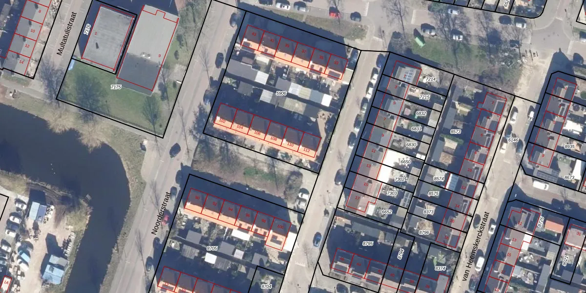 Het perceel waarop Noorderstraat 110 staat heeft een oppervlakte van 1832 m². Dit is een zeer groot perceel. De perceeloppervlakte wordt geregistreerd door het Kadaster. Gedetailleerde informatie over de maten van dit perceel kunt u vinden in het rapport Kadastrale kaart met maatvoering van Noorderstraat 110.