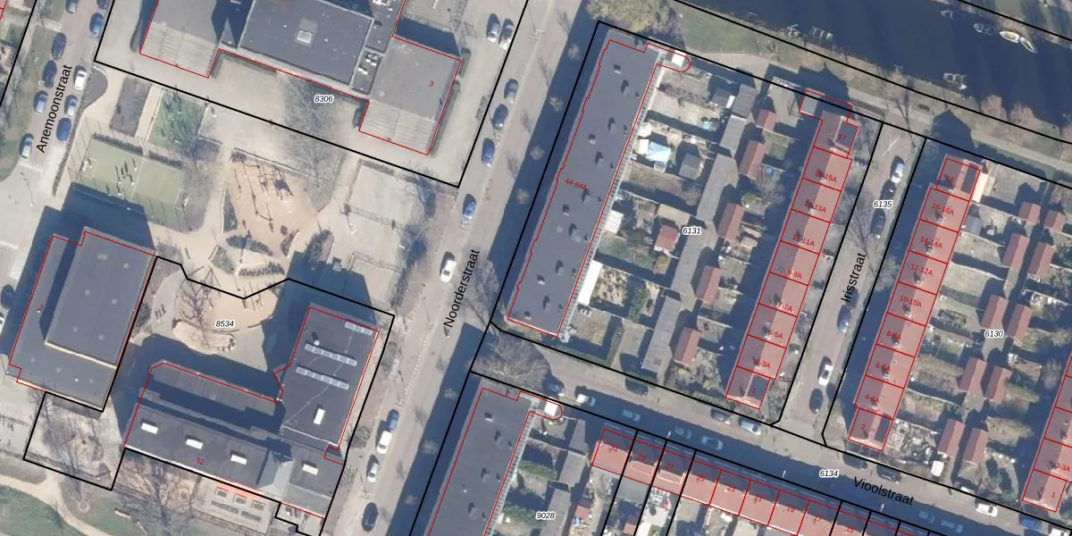 Het perceel waarop Noorderstraat 48 staat heeft een oppervlakte van 3436 m². Dit is een zeer groot perceel. De perceeloppervlakte wordt geregistreerd door het Kadaster. Gedetailleerde informatie over de maten van dit perceel kunt u vinden in het rapport Kadastrale kaart met maatvoering van Noorderstraat 48.