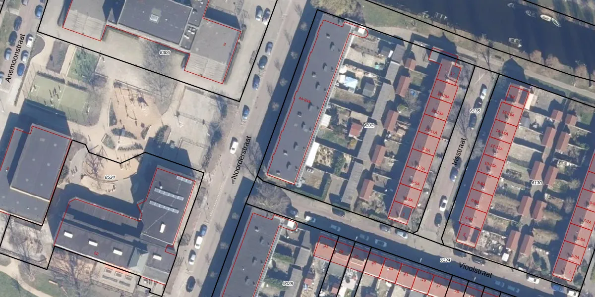 Het perceel waarop Noorderstraat 54 staat heeft een oppervlakte van 3436 m². Dit is een zeer groot perceel. De perceeloppervlakte wordt geregistreerd door het Kadaster. Gedetailleerde informatie over de maten van dit perceel kunt u vinden in het rapport Kadastrale kaart met maatvoering van Noorderstraat 54.