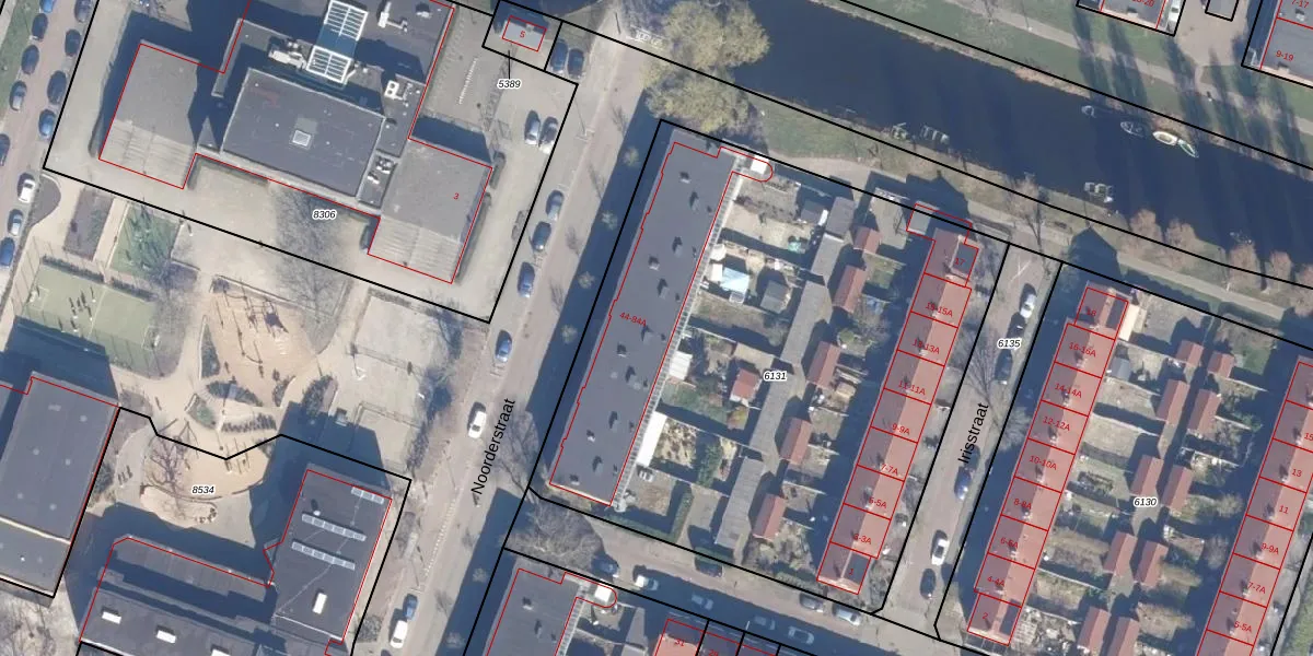 Het perceel waarop Noorderstraat 64 staat heeft een oppervlakte van 3436 m². Dit is een zeer groot perceel. De perceeloppervlakte wordt geregistreerd door het Kadaster. Gedetailleerde informatie over de maten van dit perceel kunt u vinden in het rapport Kadastrale kaart met maatvoering van Noorderstraat 64.