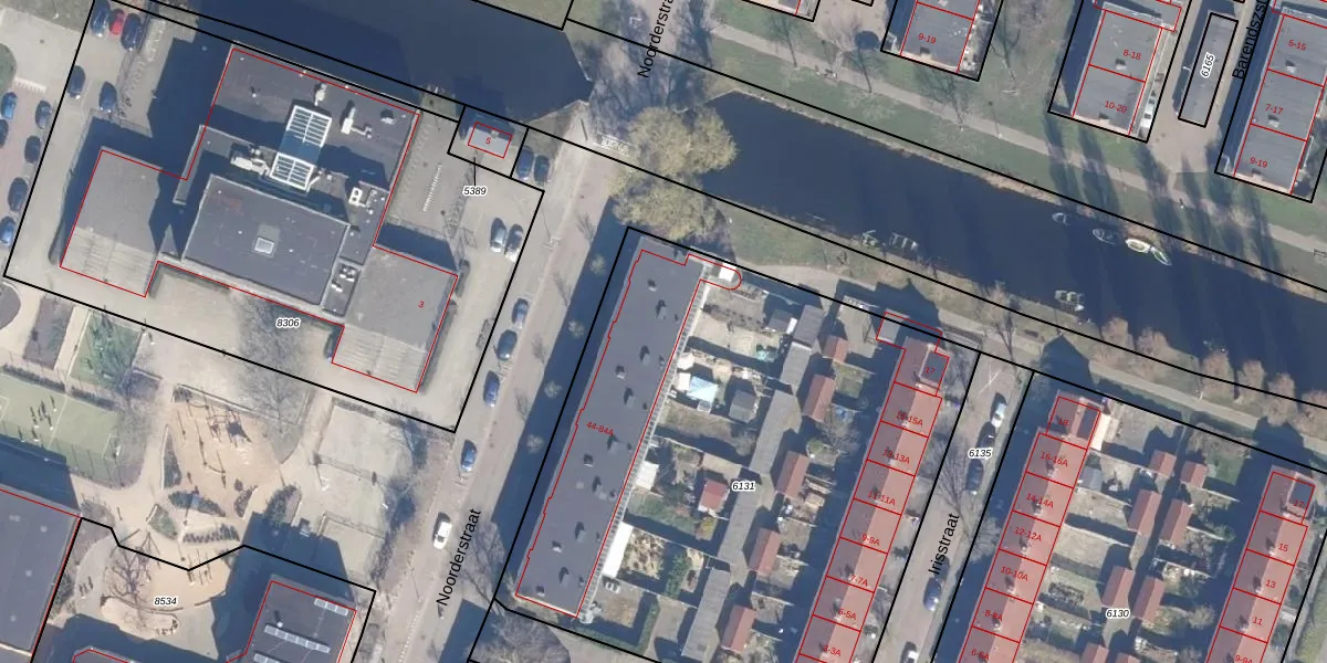 Het perceel waarop Noorderstraat 78 staat heeft een oppervlakte van 3436 m². Dit is een zeer groot perceel. De perceeloppervlakte wordt geregistreerd door het Kadaster. Gedetailleerde informatie over de maten van dit perceel kunt u vinden in het rapport Kadastrale kaart met maatvoering van Noorderstraat 78.