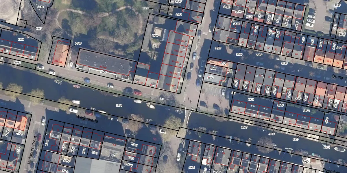 Het adres is gelegen op perceel 6950 in de sectie A en de kadastrale gemeente Wormerveer. De kadastrale aanduiding is aldus WMV00-A-6950. Het perceel is kleiner dan gemiddeld in Wormerveer. Het perceel is 1160 m² groot, terwijl het gemiddelde ligt op 1222,73 m². Het kleinste perceel in de kadastrale gemeente is 0 m² groot. De grootste perceeloppervlakte is 26,0 ha. Op het perceel zijn 15 adressen aanwezig. In de Basisregistratie Kadaster (BRK) werden de grenzen van het perceel geregistreerd op 27-11-2009.