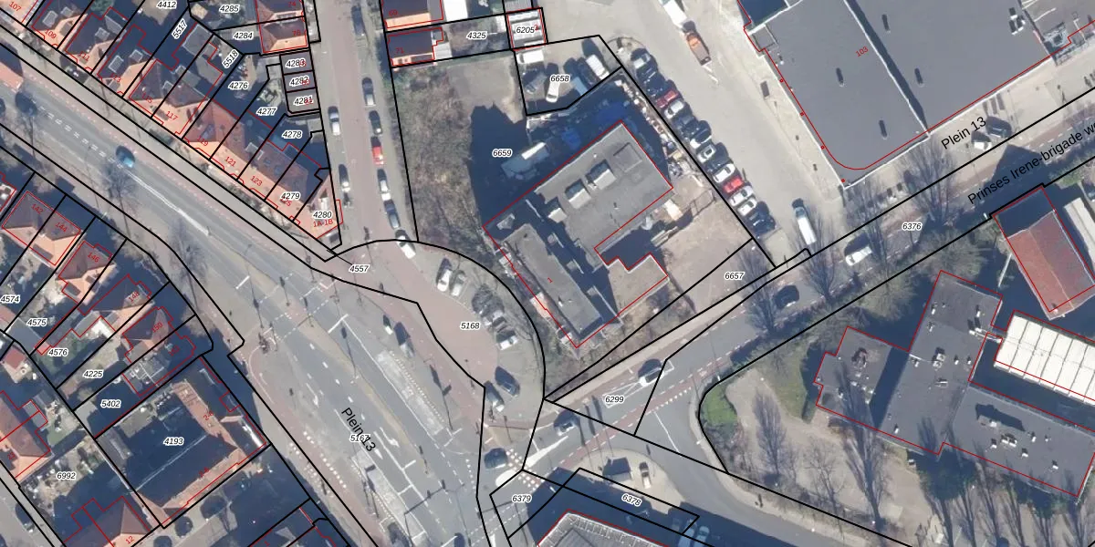 Het perceel waarop Plein 13 1-C staat heeft een oppervlakte van 2246 m². Dit is een zeer groot perceel. De perceeloppervlakte wordt geregistreerd door het Kadaster. Gedetailleerde informatie over de maten van dit perceel kunt u vinden in het rapport Kadastrale kaart met maatvoering van Plein 13 1-C.