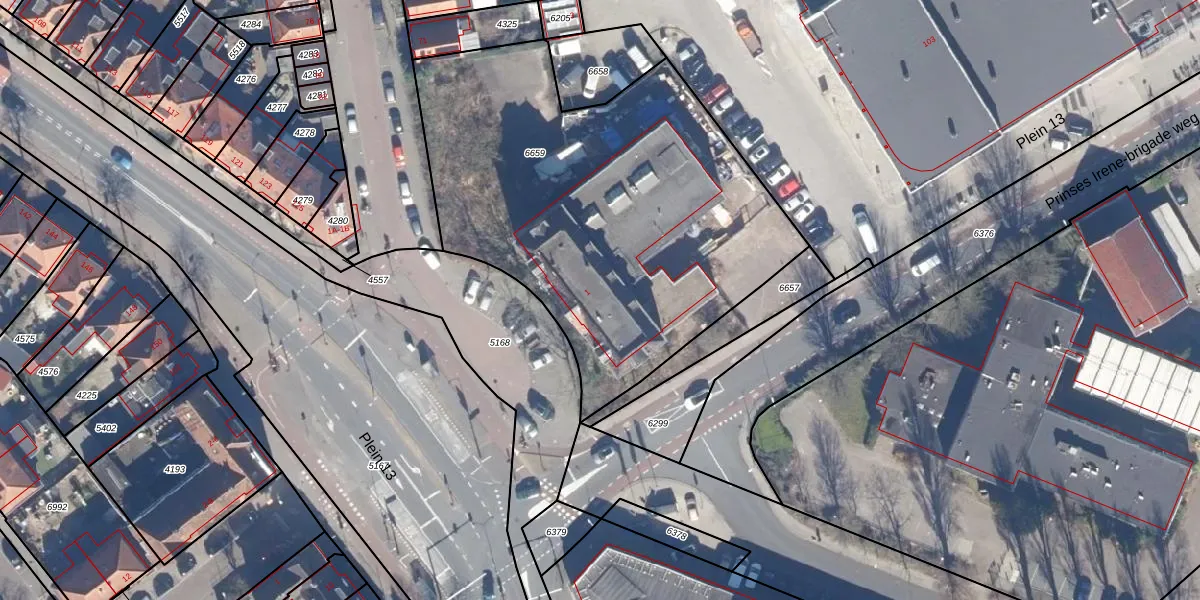 Het perceel waarop Plein 13 1-G staat heeft een oppervlakte van 2246 m². Dit is een zeer groot perceel. De perceeloppervlakte wordt geregistreerd door het Kadaster. Gedetailleerde informatie over de maten van dit perceel kunt u vinden in het rapport Kadastrale kaart met maatvoering van Plein 13 1-G.