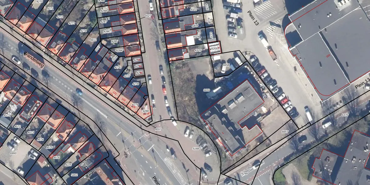 Het perceel waarop Plein 13 1-P staat heeft een oppervlakte van 2246 m². Dit is een zeer groot perceel. De perceeloppervlakte wordt geregistreerd door het Kadaster. Gedetailleerde informatie over de maten van dit perceel kunt u vinden in het rapport Kadastrale kaart met maatvoering van Plein 13 1-P.