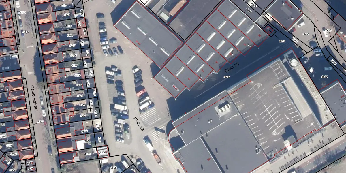 Plein 13 47 is gelegen op kadastraal perceel WMV00B6656. Deze kadastrale aanduiding is uniek en wordt gebruikt door het Kadaster om eigendomsrechten en andere zakelijke rechten vast te leggen. Het perceel maakt onderdeel uit van de kadastrale gemeente Wormerveer.