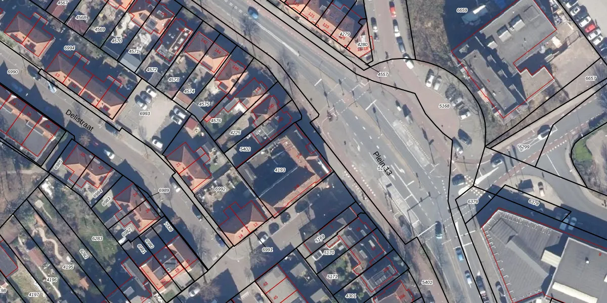 Het perceel waarop Plein 13 6-B staat heeft een oppervlakte van 521 m². Dit is een groot perceel. De perceeloppervlakte wordt geregistreerd door het Kadaster. Gedetailleerde informatie over de maten van dit perceel kunt u vinden in het rapport Kadastrale kaart met maatvoering van Plein 13 6-B.