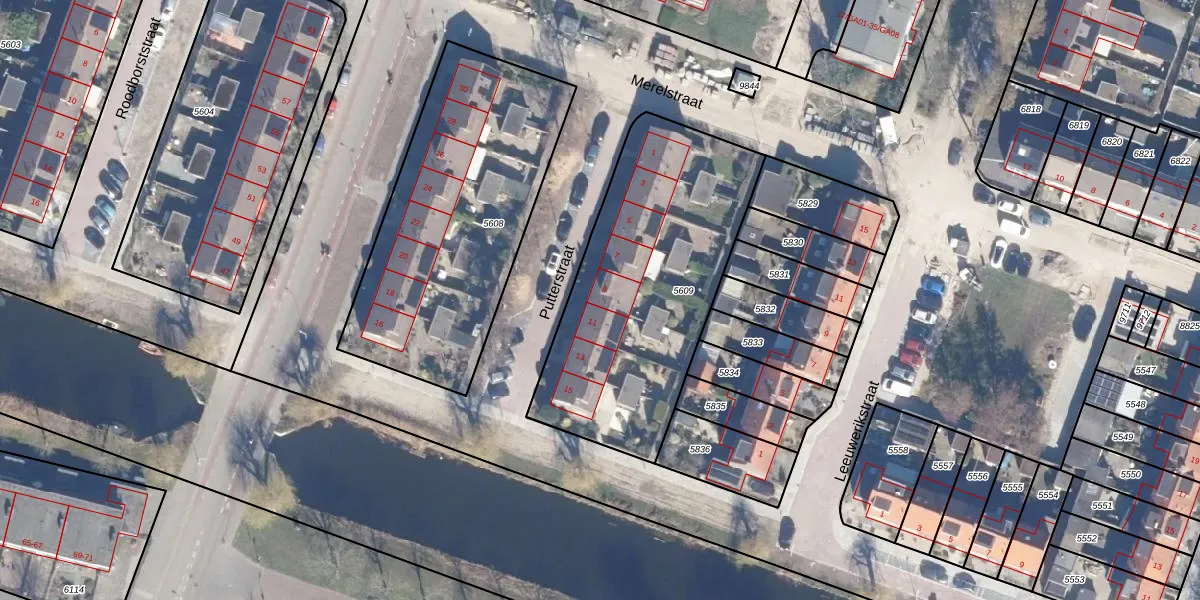 Het perceel waarop Putterstraat 9 staat heeft een oppervlakte van 1233 m². Dit is een zeer groot perceel. De perceeloppervlakte wordt geregistreerd door het Kadaster. Gedetailleerde informatie over de maten van dit perceel kunt u vinden in het rapport Kadastrale kaart met maatvoering van Putterstraat 9.