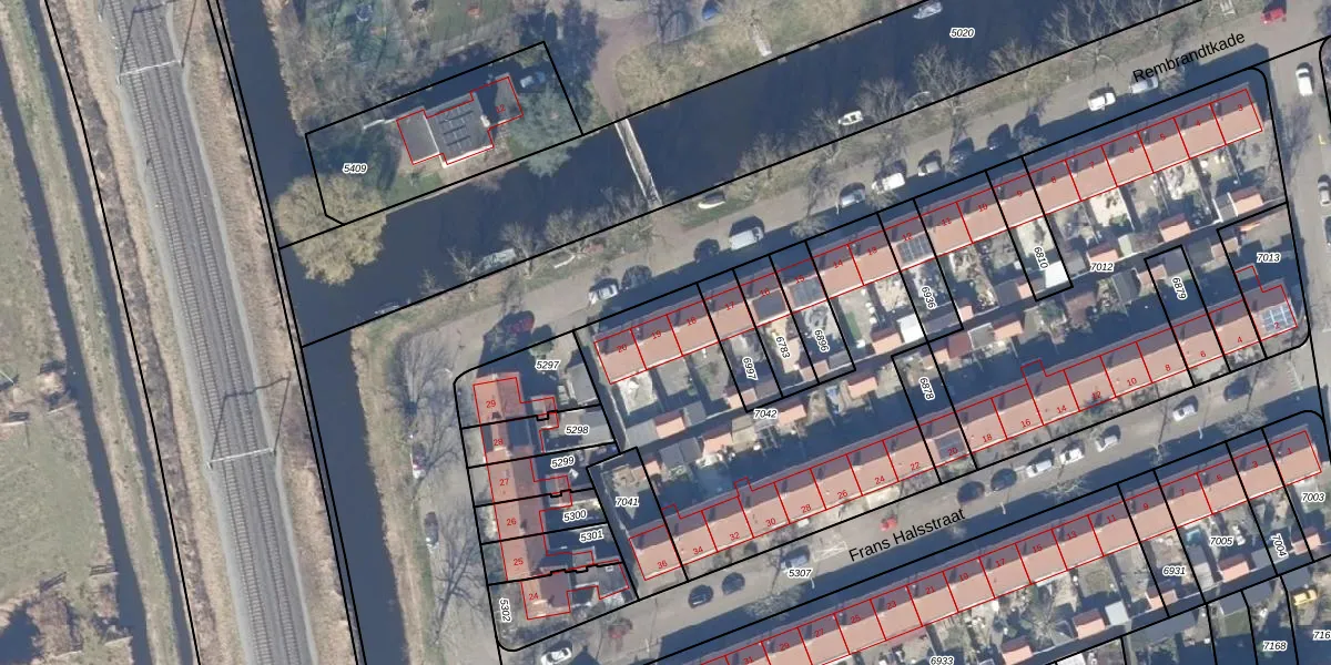 Het perceel waarop Rembrandtkade 19 staat heeft een oppervlakte van 1498 m². Dit is een zeer groot perceel. De perceeloppervlakte wordt geregistreerd door het Kadaster. Gedetailleerde informatie over de maten van dit perceel kunt u vinden in het rapport Kadastrale kaart met maatvoering van Rembrandtkade 19.