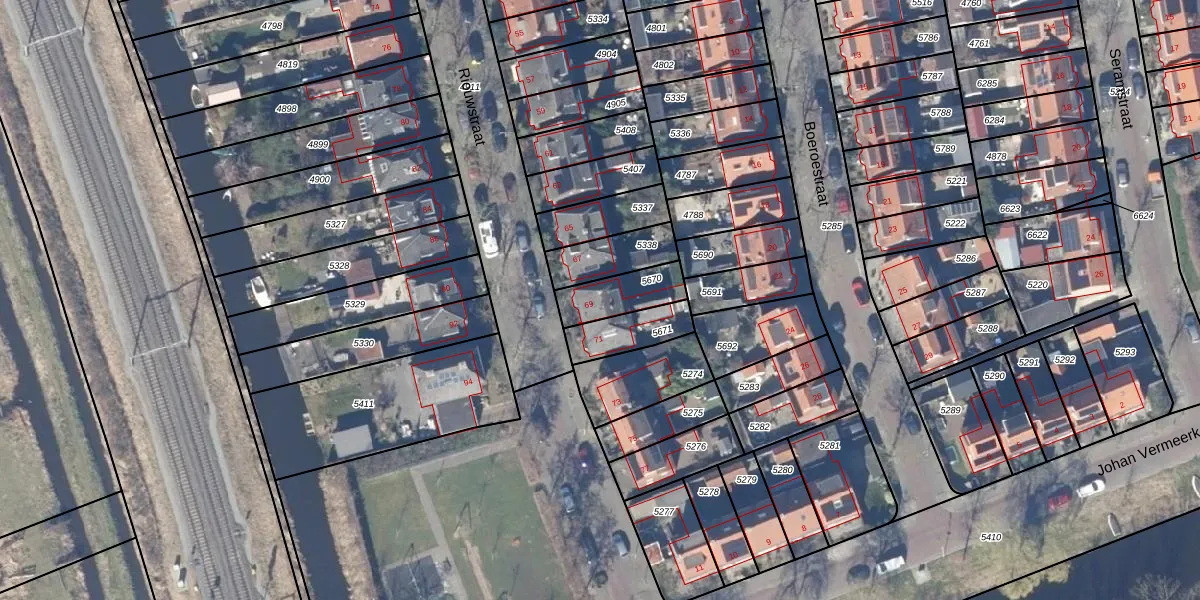 Het perceel waarop Riouwstraat 69 staat heeft een oppervlakte van 139 m². Dit is een middelgroot perceel. De perceeloppervlakte wordt geregistreerd door het Kadaster. Gedetailleerde informatie over de maten van dit perceel kunt u vinden in het rapport Kadastrale kaart met maatvoering van Riouwstraat 69.