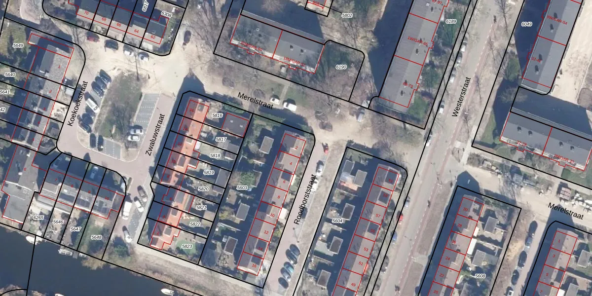 Het adres is gelegen op perceel 5603 in de sectie A en de kadastrale gemeente Wormerveer. De kadastrale aanduiding is aldus WMV00-A-5603. Het perceel is met 1260 m² relatief groot. Het gemiddelde ligt in de kadastrale gemeente Wormerveer op 1223,2 m². De grootste perceeloppervlakte in de kadastrale gemeente is 26,0 ha. De kleinste oppervlakte bedraagt 0 m². Op het perceel liggen in totaal 8 adressen. De huidige grenzen van het perceel zijn digitaal in de Basisregistratie Kadaster (BRK) geregistreerd op 13-04-2000.