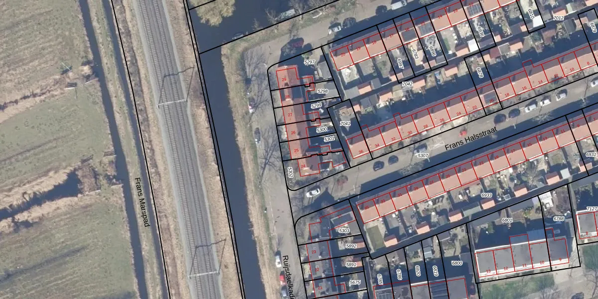 Ruijsdaelkade 25 is gelegen op kadastraal perceel WMV00B5301. Deze kadastrale aanduiding is uniek en wordt gebruikt door het Kadaster om eigendomsrechten en andere zakelijke rechten vast te leggen. Het perceel maakt onderdeel uit van de kadastrale gemeente Wormerveer.