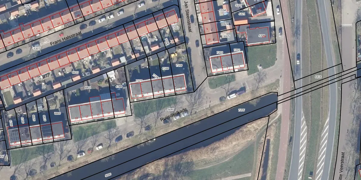 Het perceel waarop Ruijsdaelkade 4 staat heeft een oppervlakte van 277 m². Dit is een middelgroot perceel. De perceeloppervlakte wordt geregistreerd door het Kadaster. Gedetailleerde informatie over de maten van dit perceel kunt u vinden in het rapport Kadastrale kaart met maatvoering van Ruijsdaelkade 4.