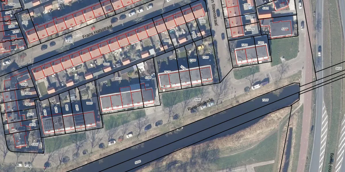 Het perceel waarop Ruijsdaelkade 7 staat heeft een oppervlakte van 295 m². Dit is een middelgroot perceel. De perceeloppervlakte wordt geregistreerd door het Kadaster. Gedetailleerde informatie over de maten van dit perceel kunt u vinden in het rapport Kadastrale kaart met maatvoering van Ruijsdaelkade 7.