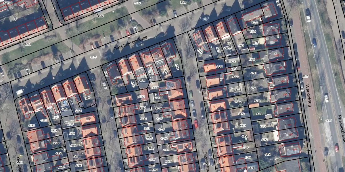 Gebruik de zoekbalk of klik op een perceel voor informatie over de adressen binnen dit perceel.