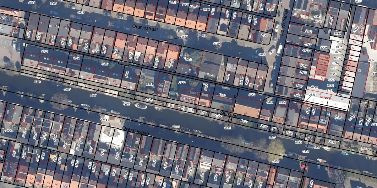 Het perceel waarop Sluispad 18 staat heeft een oppervlakte van 215 m². Dit is een middelgroot perceel. De perceeloppervlakte wordt geregistreerd door het Kadaster. Gedetailleerde informatie over de maten van dit perceel kunt u vinden in het rapport Kadastrale kaart met maatvoering van Sluispad 18.