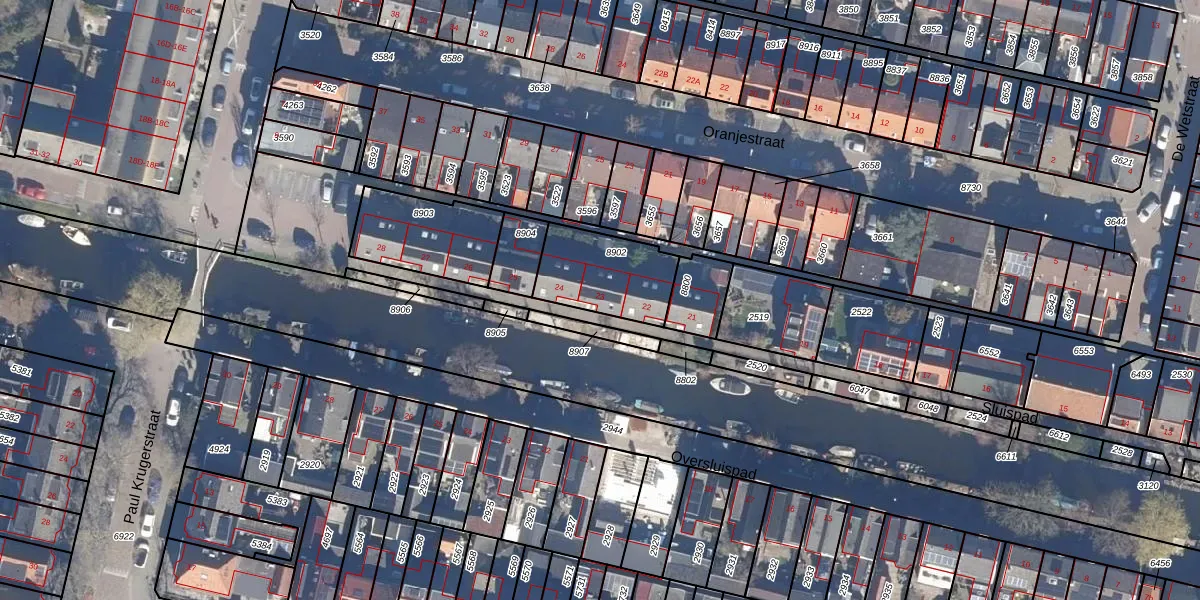 Het perceel waarop Sluispad 23 staat heeft een oppervlakte van 272 m². Dit is een middelgroot perceel. De perceeloppervlakte wordt geregistreerd door het Kadaster. Gedetailleerde informatie over de maten van dit perceel kunt u vinden in het rapport Kadastrale kaart met maatvoering van Sluispad 23.