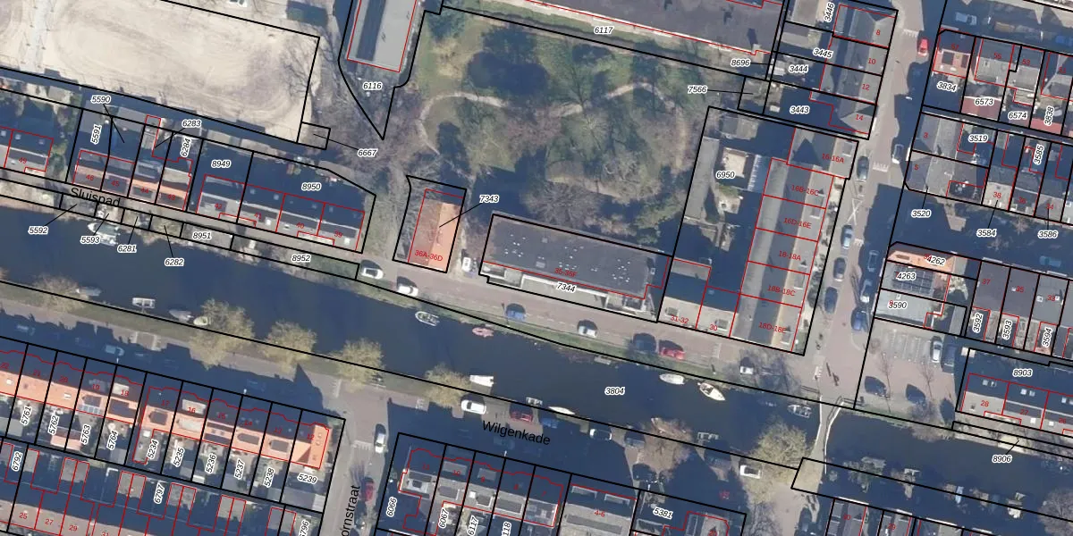 Het perceel waarop Sluispad 35 staat heeft een oppervlakte van 435 m². Dit is een groot perceel. De perceeloppervlakte wordt geregistreerd door het Kadaster. Gedetailleerde informatie over de maten van dit perceel kunt u vinden in het rapport Kadastrale kaart met maatvoering van Sluispad 35.