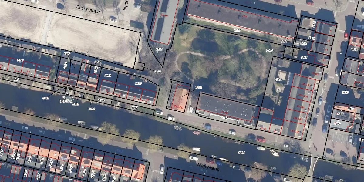 Sluispad 36-A is gelegen op kadastraal perceel WMV00A7343. Deze kadastrale aanduiding is uniek en wordt gebruikt door het Kadaster om eigendomsrechten en andere zakelijke rechten vast te leggen. Het perceel maakt onderdeel uit van de kadastrale gemeente Wormerveer.