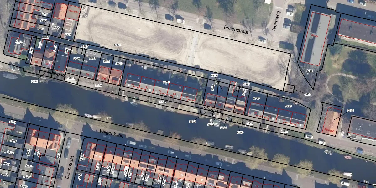 Het perceel waarop Sluispad 49 staat heeft een oppervlakte van 640 m². Dit is een groot perceel. De perceeloppervlakte wordt geregistreerd door het Kadaster. Gedetailleerde informatie over de maten van dit perceel kunt u vinden in het rapport Kadastrale kaart met maatvoering van Sluispad 49.