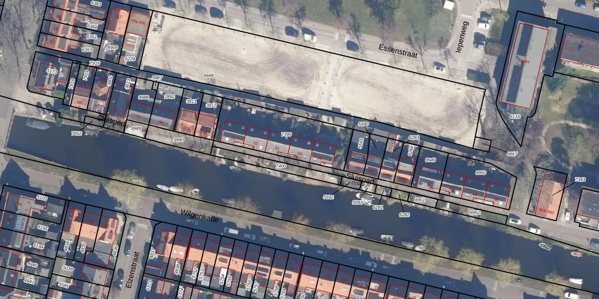 Het perceel waarop Sluispad 50 staat heeft een oppervlakte van 640 m². Dit is een groot perceel. De perceeloppervlakte wordt geregistreerd door het Kadaster. Gedetailleerde informatie over de maten van dit perceel kunt u vinden in het rapport Kadastrale kaart met maatvoering van Sluispad 50.