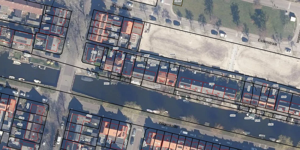 Het perceel waarop Sluispad 56 staat heeft een oppervlakte van 127 m². Dit is een middelgroot perceel. De perceeloppervlakte wordt geregistreerd door het Kadaster. Gedetailleerde informatie over de maten van dit perceel kunt u vinden in het rapport Kadastrale kaart met maatvoering van Sluispad 56.