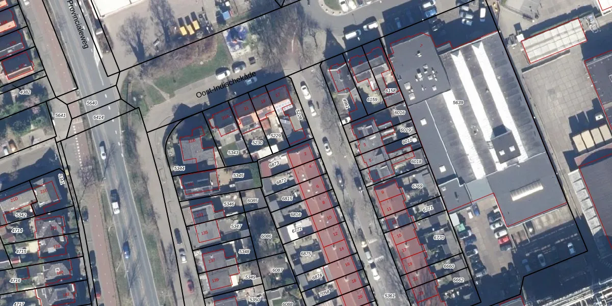 Gebruik de zoekbalk of klik op een perceel voor informatie over de adressen binnen dit perceel.