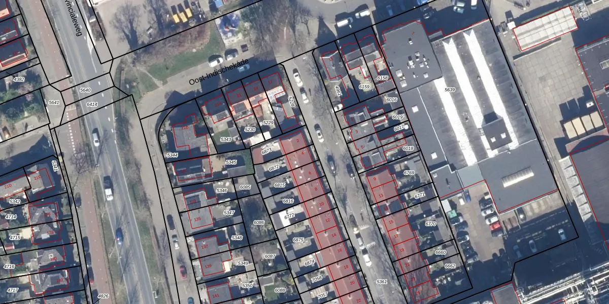 Gebruik de zoekbalk of klik op een perceel voor informatie over de adressen binnen dit perceel.