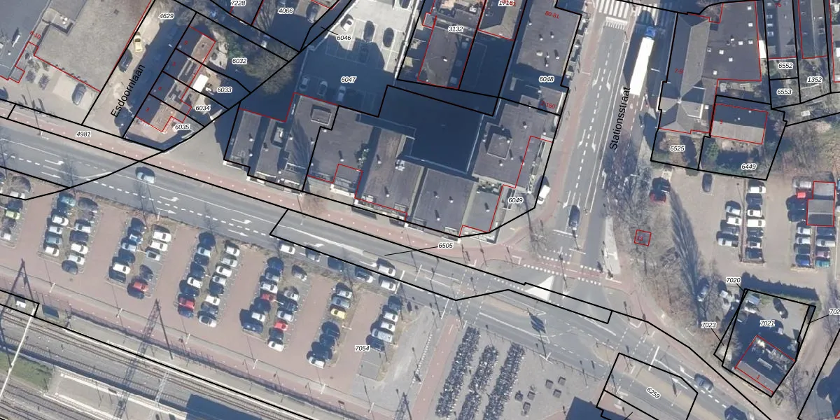 Het perceel waarop Stationsstraat 6 staat heeft een oppervlakte van 1504 m². Dit is een zeer groot perceel. De perceeloppervlakte wordt geregistreerd door het Kadaster. Gedetailleerde informatie over de maten van dit perceel kunt u vinden in het rapport Kadastrale kaart met maatvoering van Stationsstraat 6.