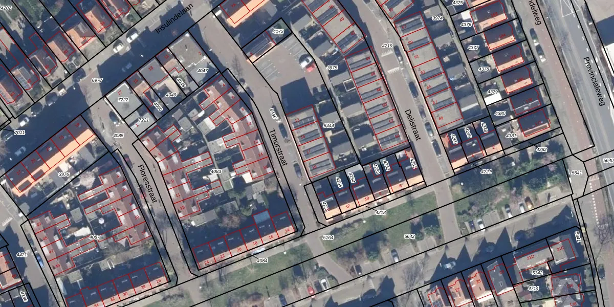 Het perceel waarop Timorstraat 17 staat heeft een oppervlakte van 755 m². Dit is een groot perceel. De perceeloppervlakte wordt geregistreerd door het Kadaster. Gedetailleerde informatie over de maten van dit perceel kunt u vinden in het rapport Kadastrale kaart met maatvoering van Timorstraat 17.