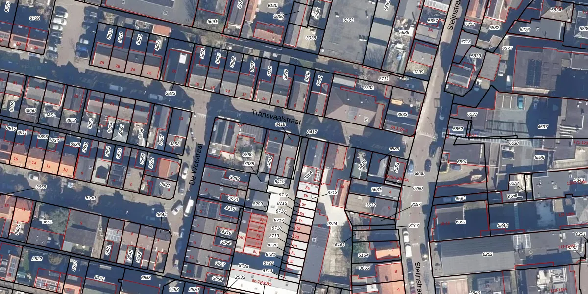Het perceel waarop Transvaalstraat 7 staat heeft een oppervlakte van 78 m². Dit is een klein perceel. De perceeloppervlakte wordt geregistreerd door het Kadaster. Gedetailleerde informatie over de maten van dit perceel kunt u vinden in het rapport Kadastrale kaart met maatvoering van Transvaalstraat 7.