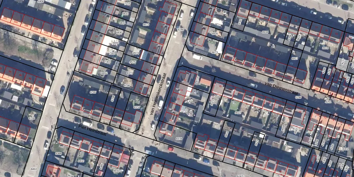 Het perceel waarop van Heemskerckstraat 13 staat heeft een oppervlakte van 2521 m². Dit is een zeer groot perceel. De perceeloppervlakte wordt geregistreerd door het Kadaster. Gedetailleerde informatie over de maten van dit perceel kunt u vinden in het rapport Kadastrale kaart met maatvoering van van Heemskerckstraat 13.