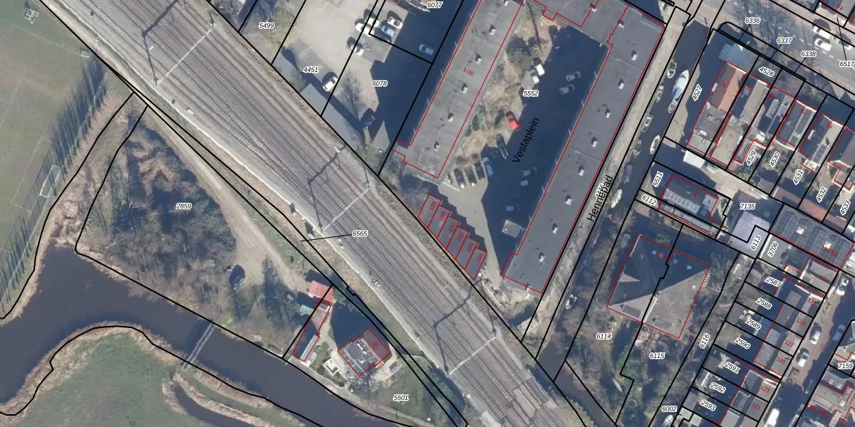 Het perceel waarop Vestaplein 159 staat heeft een oppervlakte van 3375 m². Dit is een zeer groot perceel. De perceeloppervlakte wordt geregistreerd door het Kadaster. Gedetailleerde informatie over de maten van dit perceel kunt u vinden in het rapport Kadastrale kaart met maatvoering van Vestaplein 159.