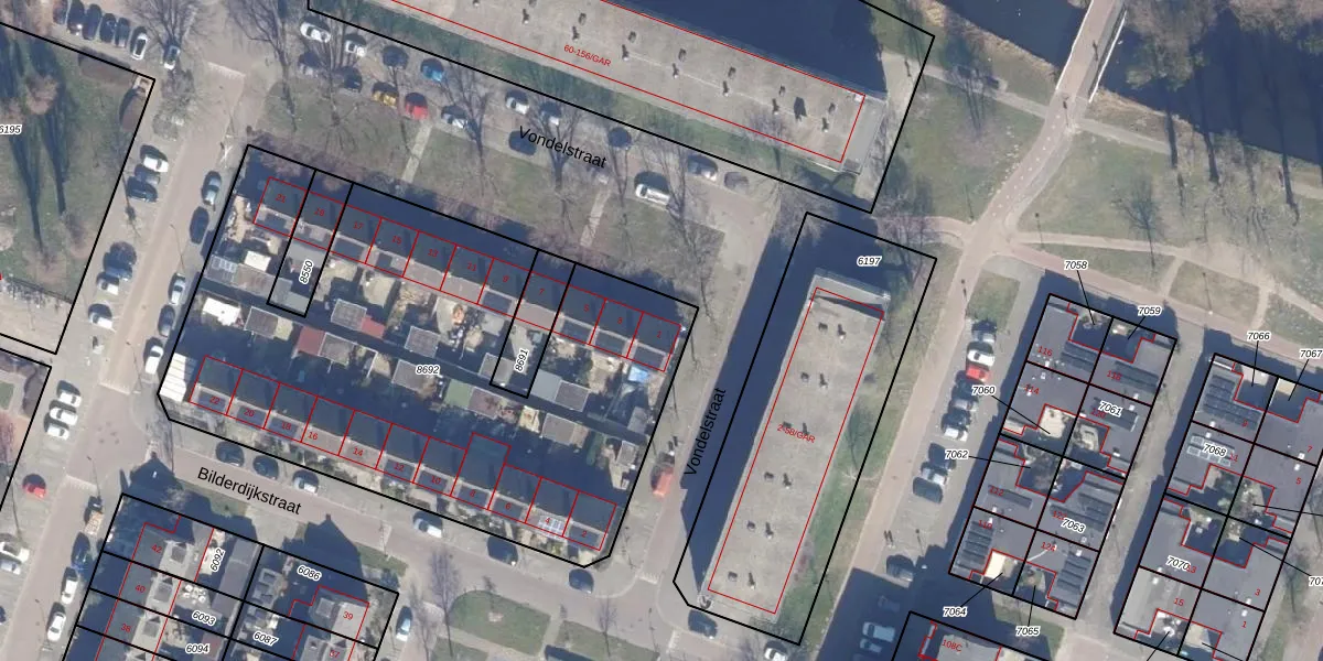 Het perceel waarop Vondelstraat 1 staat heeft een oppervlakte van 2840 m². Dit is een zeer groot perceel. De perceeloppervlakte wordt geregistreerd door het Kadaster. Gedetailleerde informatie over de maten van dit perceel kunt u vinden in het rapport Kadastrale kaart met maatvoering van Vondelstraat 1.