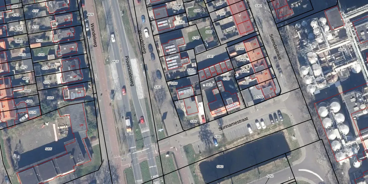 Het adres is gelegen op perceel 5355 in de sectie B en de kadastrale gemeente Wormerveer. De kadastrale aanduiding is aldus WMV00-B-5355. Het perceel is kleiner dan gemiddeld in Wormerveer. Het perceel is 185 m² groot, terwijl het gemiddelde ligt op 1222,73 m². De grootste perceeloppervlakte in de kadastrale gemeente is 26,0 ha. De kleinste oppervlakte bedraagt 0 m². Op het perceel bevinden zich geen andere adressen. De huidige grenzen van het perceel zijn digitaal in de Basisregistratie Kadaster (BRK) geregistreerd op 14-03-2000.
