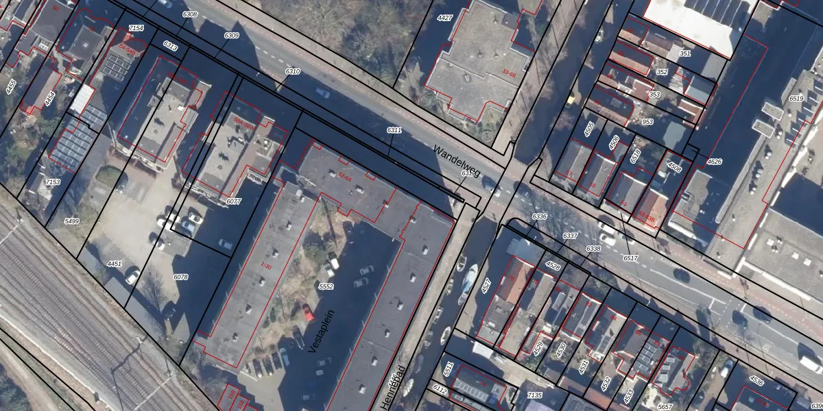 Het perceel waarop Wandelweg 66 staat heeft een oppervlakte van 3375 m². Dit is een zeer groot perceel. De perceeloppervlakte wordt geregistreerd door het Kadaster. Gedetailleerde informatie over de maten van dit perceel kunt u vinden in het rapport Kadastrale kaart met maatvoering van Wandelweg 66.