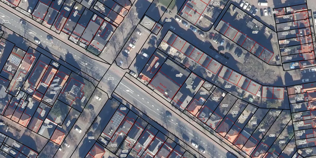 Het perceel waarop het adres ligt is WMV00-B-6029. De afkorting 'WMV00' staat voor kadastrale gemeente Wormerveer. Het perceel is kleiner dan gemiddeld in Wormerveer. Het perceel is 405 m² groot, terwijl het gemiddelde ligt op 1223,2 m². De grootste perceeloppervlakte in de kadastrale gemeente is 26,0 ha. De kleinste oppervlakte bedraagt 0 m². Op het perceel liggen in totaal 9 adressen. De huidige grenzen van het perceel zijn digitaal in de Basisregistratie Kadaster (BRK) geregistreerd op 14-03-2000.