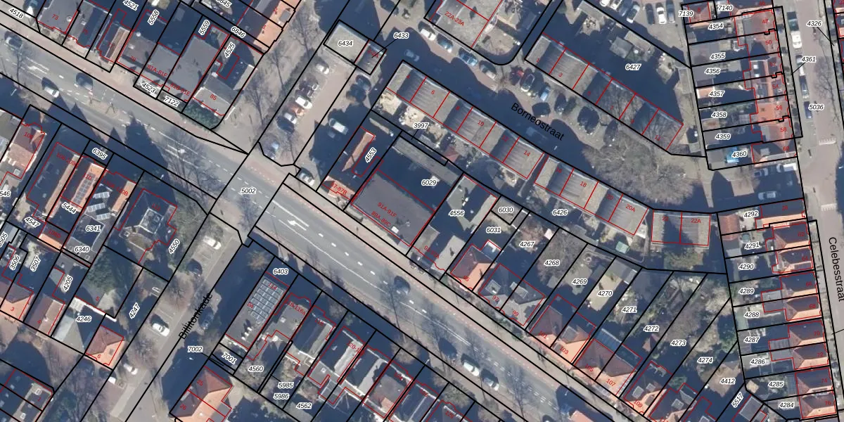 Het perceel waarop het adres ligt is WMV00-B-6029. De afkorting 'WMV00' staat voor kadastrale gemeente Wormerveer. Het perceel is kleiner dan gemiddeld in Wormerveer. Het perceel is 405 m² groot, terwijl het gemiddelde ligt op 1223,2 m². De grootste perceeloppervlakte in de kadastrale gemeente is 26,0 ha. De kleinste oppervlakte bedraagt 0 m². Op het perceel liggen in totaal 9 adressen. De huidige grenzen van het perceel zijn digitaal in de Basisregistratie Kadaster (BRK) geregistreerd op 14-03-2000.