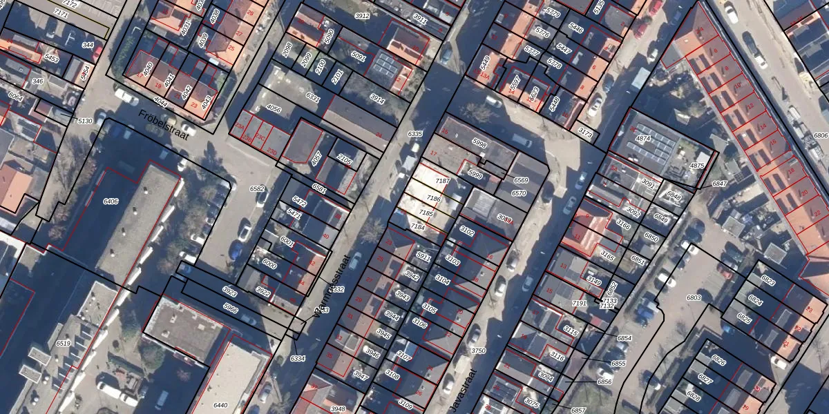 Warmoesstraat 21 is gelegen op kadastraal perceel WMV00B7185. Deze kadastrale aanduiding is uniek en wordt gebruikt door het Kadaster om eigendomsrechten en andere zakelijke rechten vast te leggen. Het perceel maakt onderdeel uit van de kadastrale gemeente Wormerveer.