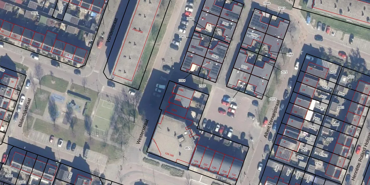 Het perceel waarop Westerstraat 108-C staat heeft een oppervlakte van 1555 m². Dit is een zeer groot perceel. De perceeloppervlakte wordt geregistreerd door het Kadaster. Gedetailleerde informatie over de maten van dit perceel kunt u vinden in het rapport Kadastrale kaart met maatvoering van Westerstraat 108-C.