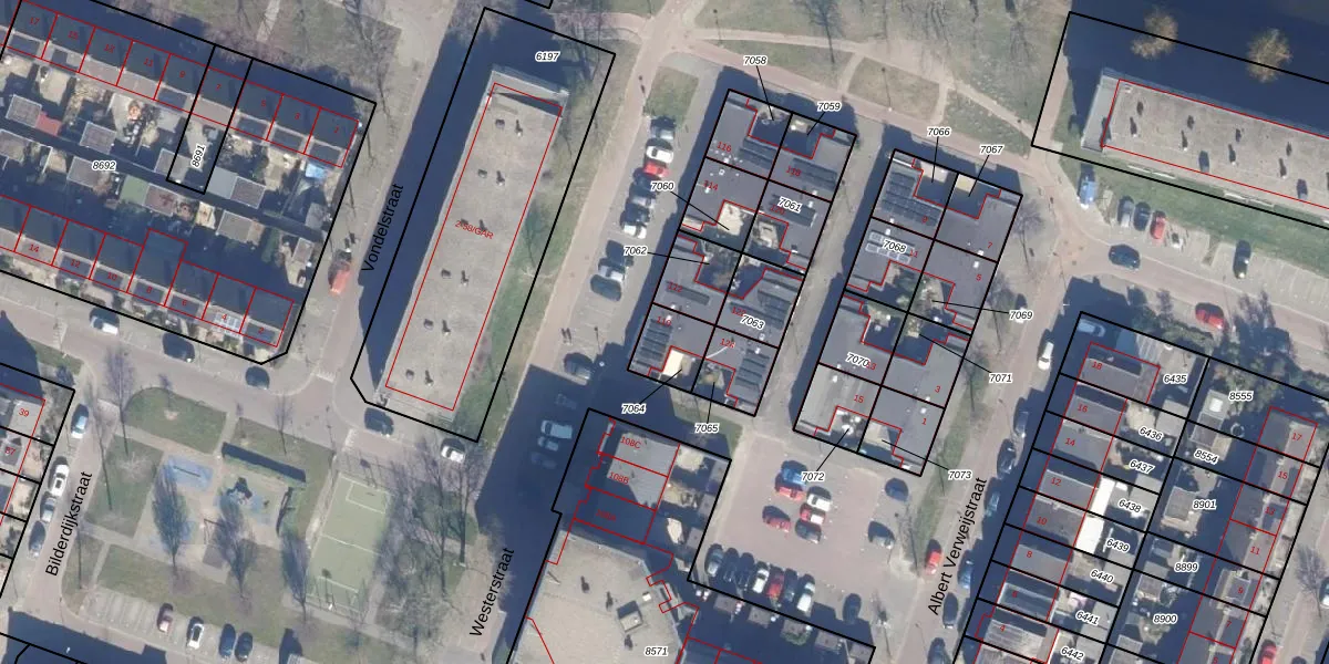 Gebruik de zoekbalk of klik op een perceel voor informatie over de adressen binnen dit perceel.