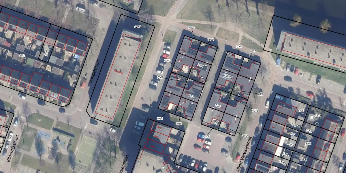 Gebruik de zoekbalk of klik op een perceel voor informatie over de adressen binnen dit perceel.